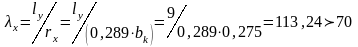 Принимаем n=2, т.к. по принятой схеме вертикальных связей по колоннам нет раскрепления растянутой зоны из плоскости деформирования. По той же причине принимаем расчетную длину колонны из плоскости рамы равной высоте колонны ly=Н=9 м. Найдем значения гибкости из плоскости рамы: