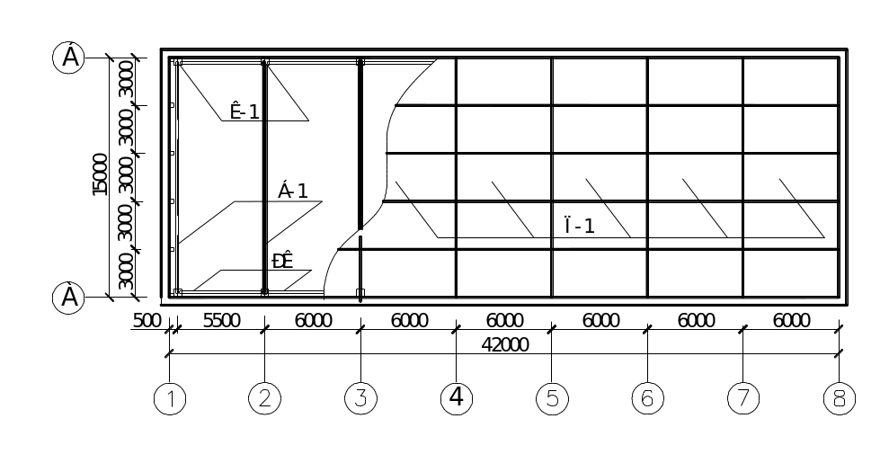 Размещение колонн в плане принимают в соответствии с пролётом здания и шагом несущих конструкций по зданию. Привязку наружной грани колонн продольной оси в зданиях без мостовых кранов принимают, как правило, нулевой. Привязку к поперечным осям принимают центральной. У торцов здания колонны обычно смещаются с поперечной разбивочной оси на 500мм внутрь здания для возможности использовании ограждающих конструкций с одинаковой длиной.