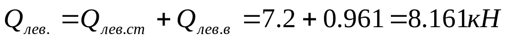 Определение поперечных сил (без учета коэффициента сочетаний)