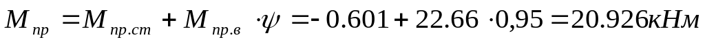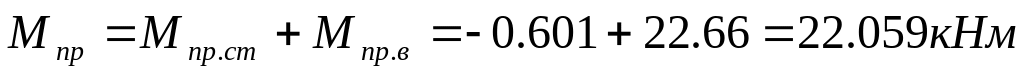 Мпр.в=p'Н2/2+Wот Н+Xв Н=0.78·5.52/2+1.467·5.5+0.508·5.5=22.66 кНм