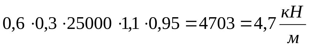 Расчётная нагрузка на 1м длины ригеля с учётом коэффициента надёжности по назначению здания n = 0,95: