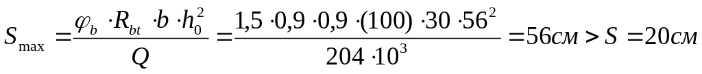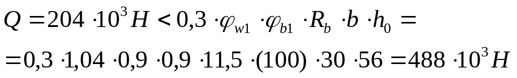 а) Qmax = 204103Н < 2,5 Rbtbh0 = 2,50,90,9(100)3060 = 365,5103Н - выполняется