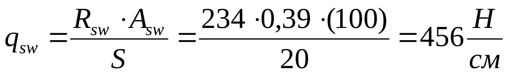 Принимаем 6АIII с As = 0,283 см2 Rsw = 285 МПа