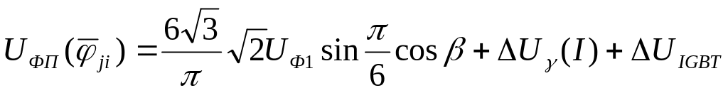 где β – угол включения IGBT- модулей, γ – угол коммутации IGBT- модулей, I – среднее значение тока инвертора, ΔUIGBT – падение напряжения за счет процесса коммутации тока I , ΔUIGBT – падение напряжения на IGBT- модулях.