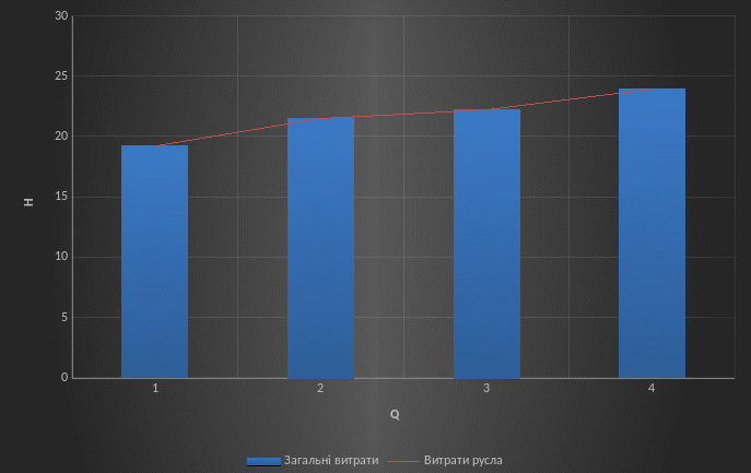 Гідрограф загальної та руслової витрати 4%-ї ймовірності перевищення