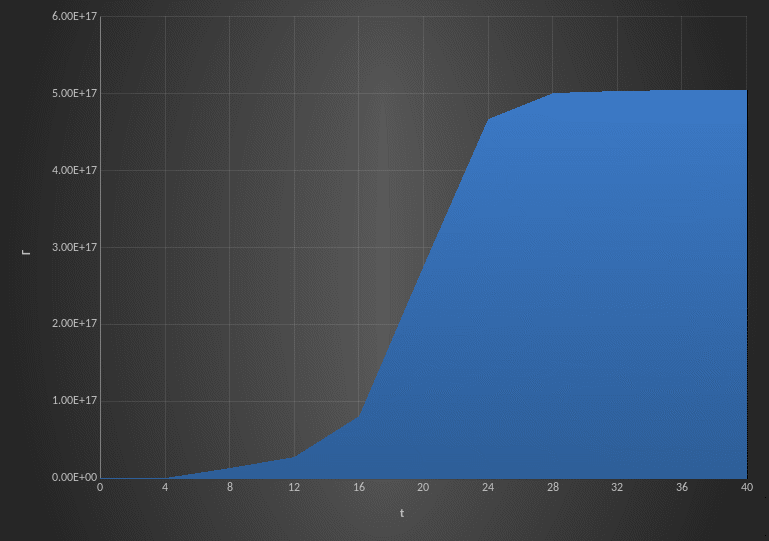 Г 1,33E+14 5,03E+15 1,05E+16 2,60E+16 7,87E+16 1,31E+17 1,42E+17 1,44E+17 1,44E+17 1,44E+17