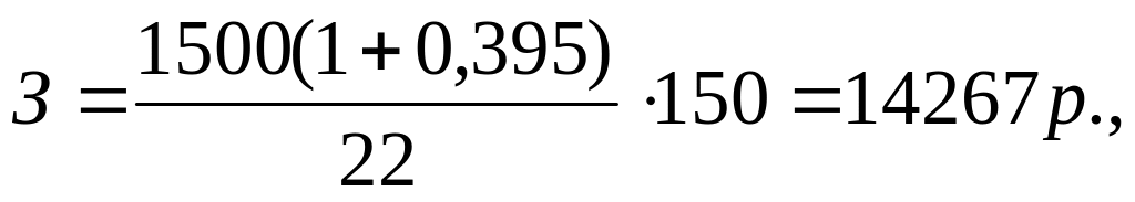При определенной выше длительности разработки и коэффициента tp начислений на социальные нужды 0,395 заработная плата составит