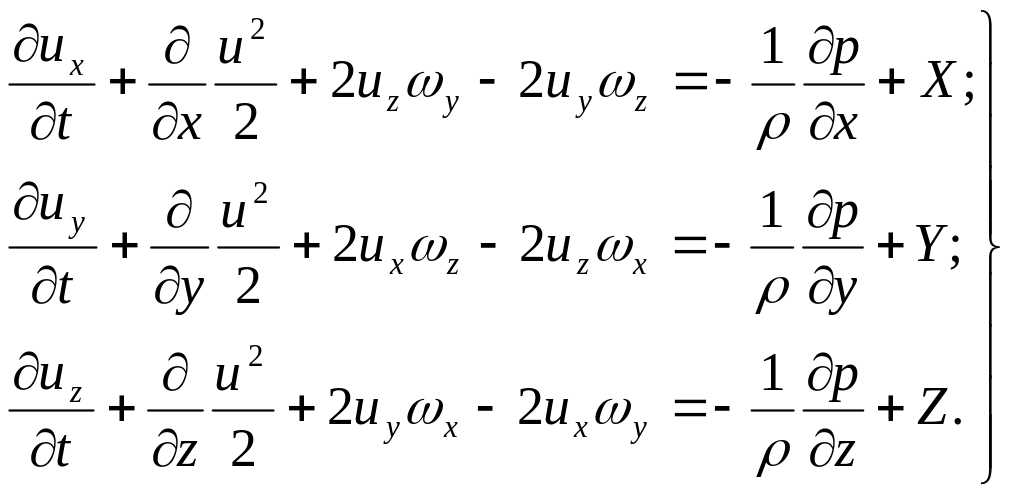 Теперь уравнении Громеки – Ламба могут быть записаны в таком виде: