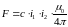 Полную силу F взаимодействия между проводниками 1 и 2 получим после интегрирования dFdx по всей длине проводника 1 :