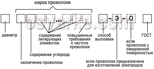 Сварочная проволока обозначается следующим образом (см. рисунок ниже).