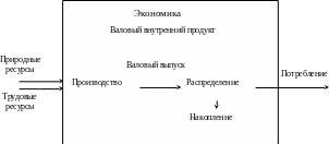 В результате функционирования экономики за год все отрасли материального производства (промышленность, сельское хозяйство, строительство, транспорт и т.п.) создают валовой внутренний продукт (ВВП). В натурально-вещественной форме ВВП распадается на средства труда и предметы потребления, в стоимостной форме — на фонд возмещения выбытия основных фондов (амортизационный фонд) и вновь созданную стоимость (национальный доход).