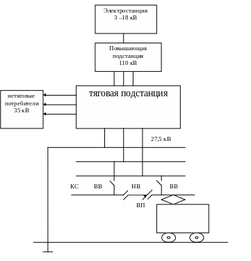 1.2 Система переменного тока с напр. К.С. 25000 В (19000 – 29000 В)