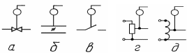 Характер роботи виконавчого механізму на схемах автоматизації показують таким чином: