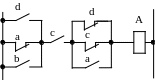 а, b, c, d – контакти (замикаючі та розмикаючі), причому контакт а належить котушці А, т.я. має спільну літеру позначення.