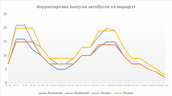 Корректировка «допиковой», «межпиковой» и «послепиковой»зон проводится в соответствии с выбором оптимальных величин интервалов движения по времени суток.