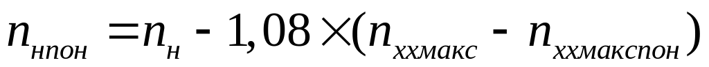 Так же для построения регуляторной характеристики необходимо вычислить частоту вращения коленчатого вала на максимально пониженном режиме холостого хода и на номинальном пониженном режиме:
