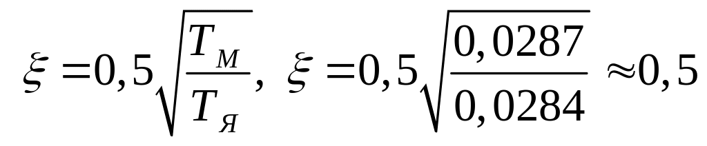 Сравнивая передаточные функции электродвигателя по задающему воздействию и колебательного звена, можно определить коэффициент затухания: