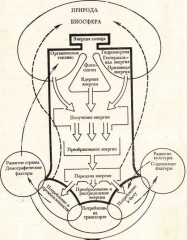 Под энергетикой, или энергетической системой, следу- рт понимать совокупность больших естественных (природных) и искусственных (созданных человеком) систем, Предназначенных для получения, преобразования, распределения и использования в народном хозяйстве энергетических ресурсов всех видов 1. На рис. В.1 показана Такая совокупность систем, их прямые (сплошные линии) И обратные (штриховые линии) связи. При этом подчеркивается системный подход к энергетике, т. е. она рассматривается как большая система, включающая в себя на правах подсистем части других больших систем.