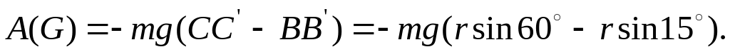 Найдем работу сил, приложенных к шайбе, на участке пути ВС. Сила тяжести совершает работу на перепаде высот между точками С и В. Так как точка перемещается вверх, то работа должна быть меньше нуля. Из чертежа ясно, что работа равна |