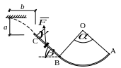 Решение. Для того, чтобы определить b, надо знать скорость шайбы в точке С. Для этого необходимо сначала рассмотреть движение шайбы по прямолинейному участку пути АВ, а затем по криволинейному ВС.