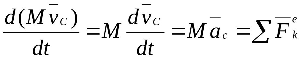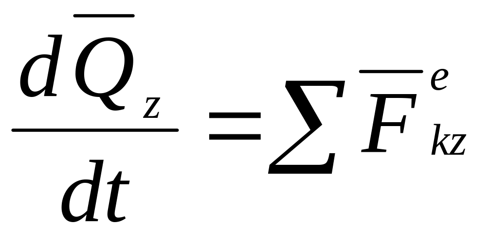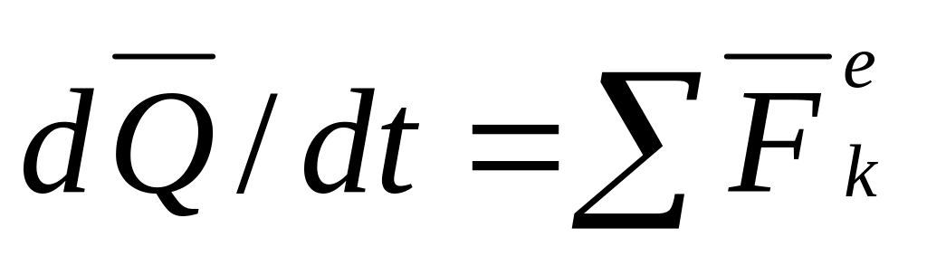 Теорема в дифференциальной форме: производная по времени от количества движения системы равна геометрической сумме всех действующих на систему внешних сил.