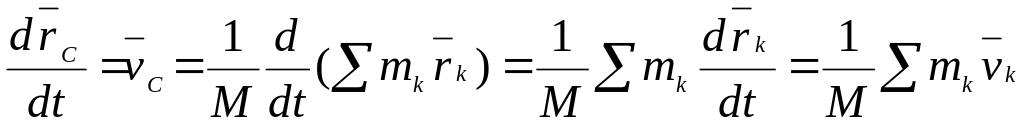 массы всей системы на скорость ее центра