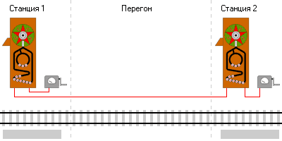 На рабочем месте ДСП установлены: два жезловых аппарата разных серий, каждый на свой перегон; индуктор; амперметр; звонок. Чтобы отправить поезд на соседнюю станцию, ДСП должен по телефону уведомить об этом ДСП соседней станции. ДСП соседней станции, вращая рукоятку индуктора, посылает ток на жезловый аппарат станции отправления, где должен прозвенеть звонок и отклониться стрелка амперметра (жезловый аппарат разблокирован). Только тогда на станции отправления ДСП может изъять жезл из аппарата.