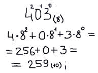 И сделаем обратное преобразование переведем число 403 в восьмеричной системе счисления в десмятичную.