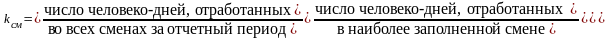 Этот коэффициент дает обобщенную характеристику использования рабочих мест во всех сменах. Он может быть рассчитан вторым способом: