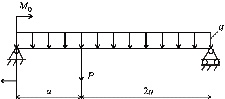 3. Консоль длиной нагружена равномерно распределенной нагрузкой и сосредоточенными силами. Установить при каком значении силы момент в заделке обратится в нуль. Построить эпюры и при найденном значении силы.