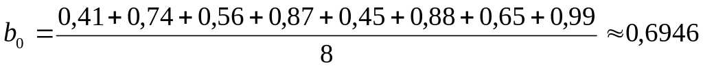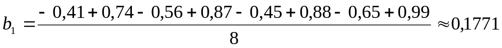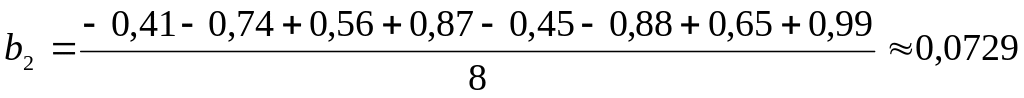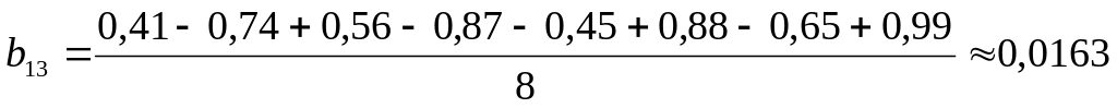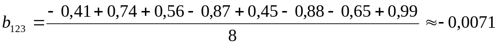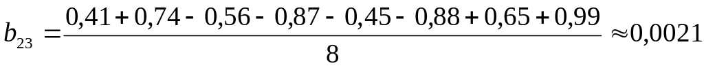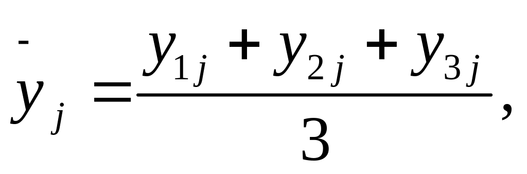 Найдем среднее значение результатов трех параллельных опытов по каждой строке матрицы планирования следующим образом: