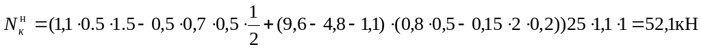 М2=Nпок·eпок2-Nк,в·eк- Nст,в·eст,2+(Nпб+Nr)(0,75-hn/2)=-450·0,025-33·0,15-186·0,55+ +(111)·(0,75+0,25-0,4)=-52кН·м