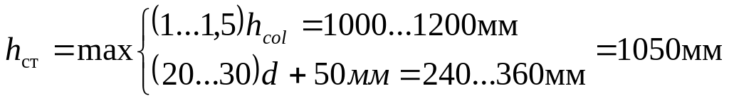 Из условия жёсткого закрепления колонны в фундаменте глубина стакана:
