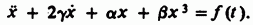 Нелинейные эффекты могут проявиться многими разнообразными способами. Классический пример — это нелинейная пружина, в которой восстанавливающая сила нелинейно зависит от растяжения. В случае симметричной нелинейности (одинаковый отклик при сжатии и растяжении) уравнение движения принимает вид