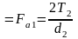 окружная сила колеса Ft2, равна осевой силе червяка Fa1,