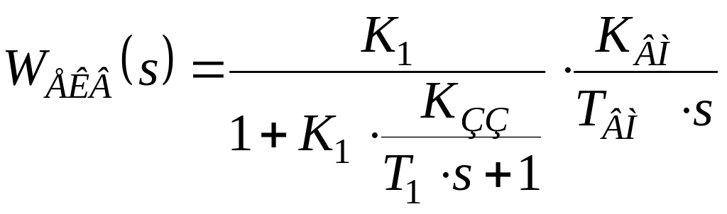 Поділимо чисельник і знаменник виразу на комплекс (ТВМ + K1∙KВМ∙KЗЗ∙Т1) і перегрупуємо рівніння таким чином, щоб виділити структуру, подібну до структури передатної функції ідеального ПІ-регулятора