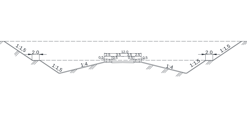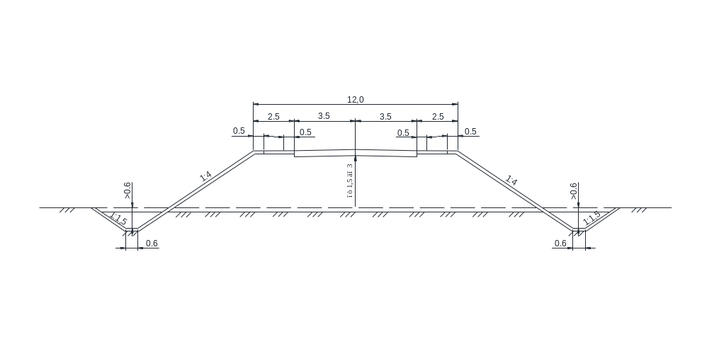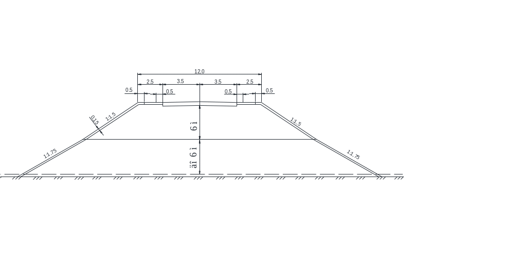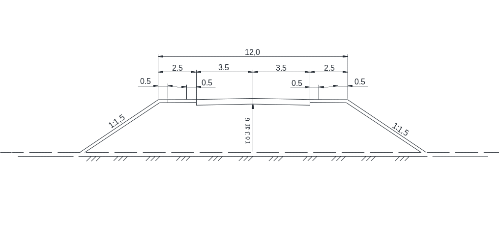 Рис 4.4. 3-ий тип поперечного профиля (насыпь от 6 до 12 м) с откосами 1:1,75 до 6 метров, 1:1,5