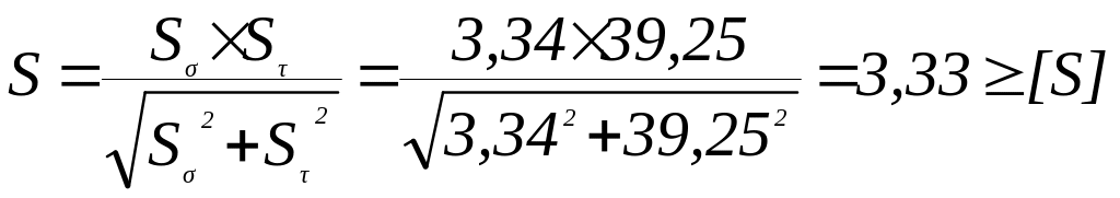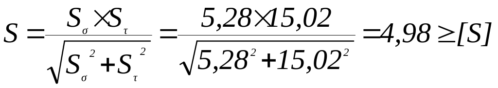 5. Определяем коэффициент запаса прочности по нормальным и касательным напряжениям: