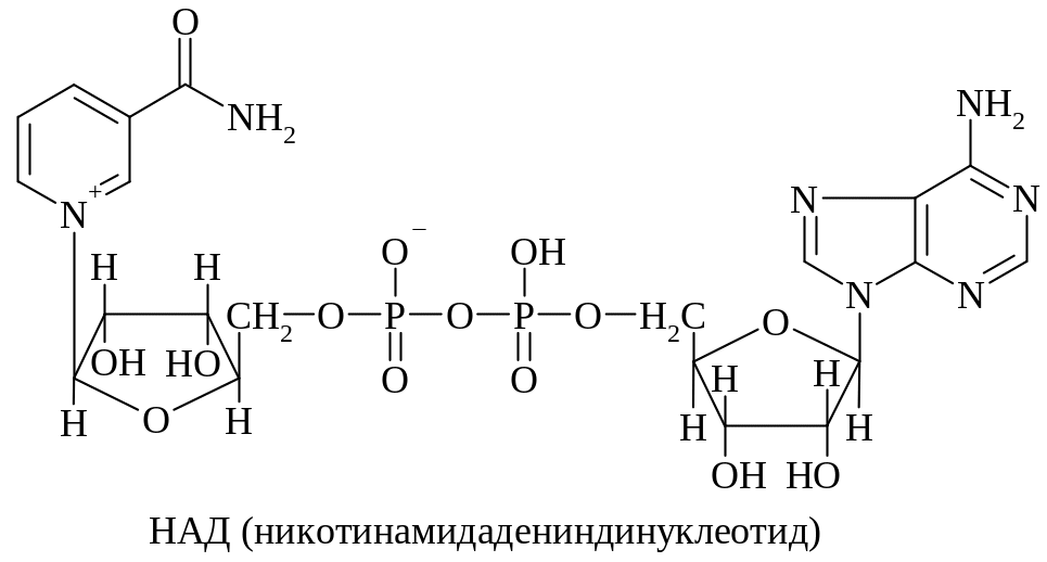 Группа нуклеотидных коферментов производных витаминов (КоА, НАД, НАДФ, ФАД и др.) представляет собой смешанный ангидрид Р1, Р2-диэфиров пирофосфорной кислоты. В своей структуре они имеют витамин, соединенный β-гликозидной связью с D-рибофуранозой (нуклеозид) и по первичной гидроксильной группе этерифицированный ортофосфорной кислотой (нуклеотид); эта часть молекулы пирофосфатной связью объединяется с аденозин-5'-фосфатом.
