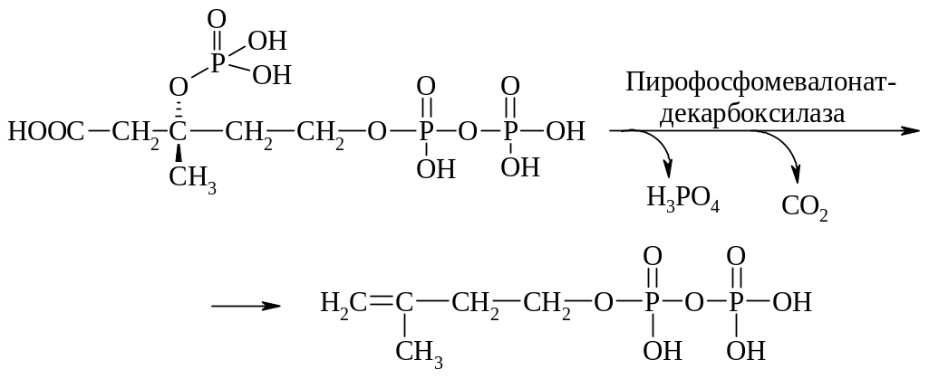 которая подвергается дефосфорилированию и декарбоксилированию с образованием 3-изопентенилдифосфата: