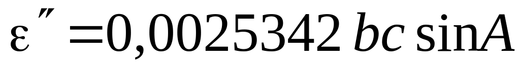Одновременно определяют сферический избыток, который понадобился при вычислении невязки треугольника. Его вычисляют по формуле: