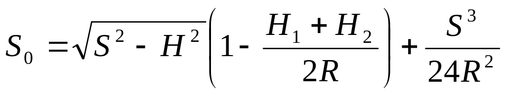 R – средний радиус кривизны эллипсоида вдоль измеренной линии, который можно вычислить по формуле: