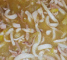Добавляем кальмары и жарим, постоянно помешивая, 2-3 минуты. |