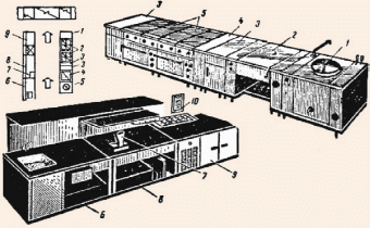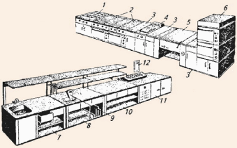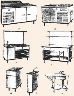 Для рациональной организации рабочего места повара' следует применять также секционные модулированные производственные столы и другое немеханическое оборудование (рис. 16).