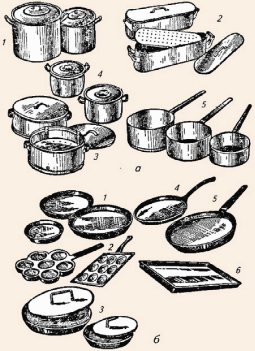 2-10 л; б - для жаренья: 1 -сковородыобщего