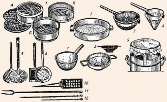 6 - ковши-сачки; 7 - черпак; 8 - цедилка