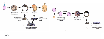 Если гибридную ДНК ввести в оплодотворенную яйцеклетку живот-ных, могут быть получены трансгенные организмы, экспрессирующие модифицированный ген и передающие его потомкам. С помощью генетической инженерии созданы линии животных, устойчивых к вирусным заболеваниям, а также породы с полезными для человека признаками. Например, микроинъекция рекомбинантной ДНК, содержав-шей ген соматотропина быка, в зиготу кролика позволила получить трансгенное животное с гиперпродукцией этого гормона. Полученные животные обладали ярко выраженной акромегалией. Кроме чисто практической полезности генетической трансформации животных, она позволяет решать и некоторые задачи фундаментальной науки. Например, она может оказать большую помощь в установлении роли отдельных генов и их белковых продуктов как в регуляции активности других генов, так и в различных патологических процессах.