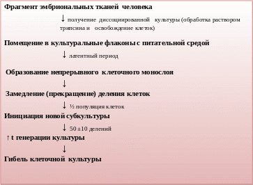 Пролиферация клеток I-ой и II-ой линий in vitro по Хейфлику выглядит следующим образом.