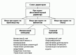 Организационная структура системы управления финансами хозяйствующего субъекта , а также ее кадровый состав могут быть построены различными способами в зависимости от размеров предприятия и вида его деятельности. Для крупной компании характерно обособление: руководимая вице-президентом по финансам (Финансовым директором) специальная служба, как правило включающая в себя бухгалтерию и финансовый отдел. Вообще типовой структуры организации и управления финансами для всех компании быть не может.