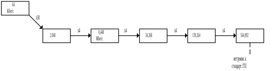 Технология строилась по схеме каскадного соединения мультиплексоров различного уровня иерархии (с коэффициентом, кратным 4 для европейской системы) (рис. 2.2).